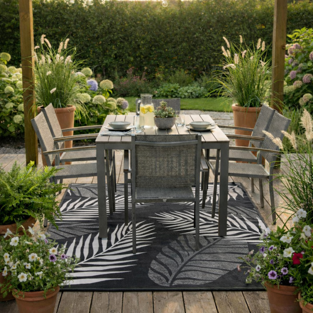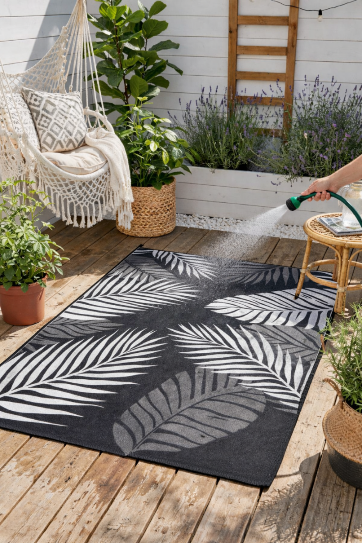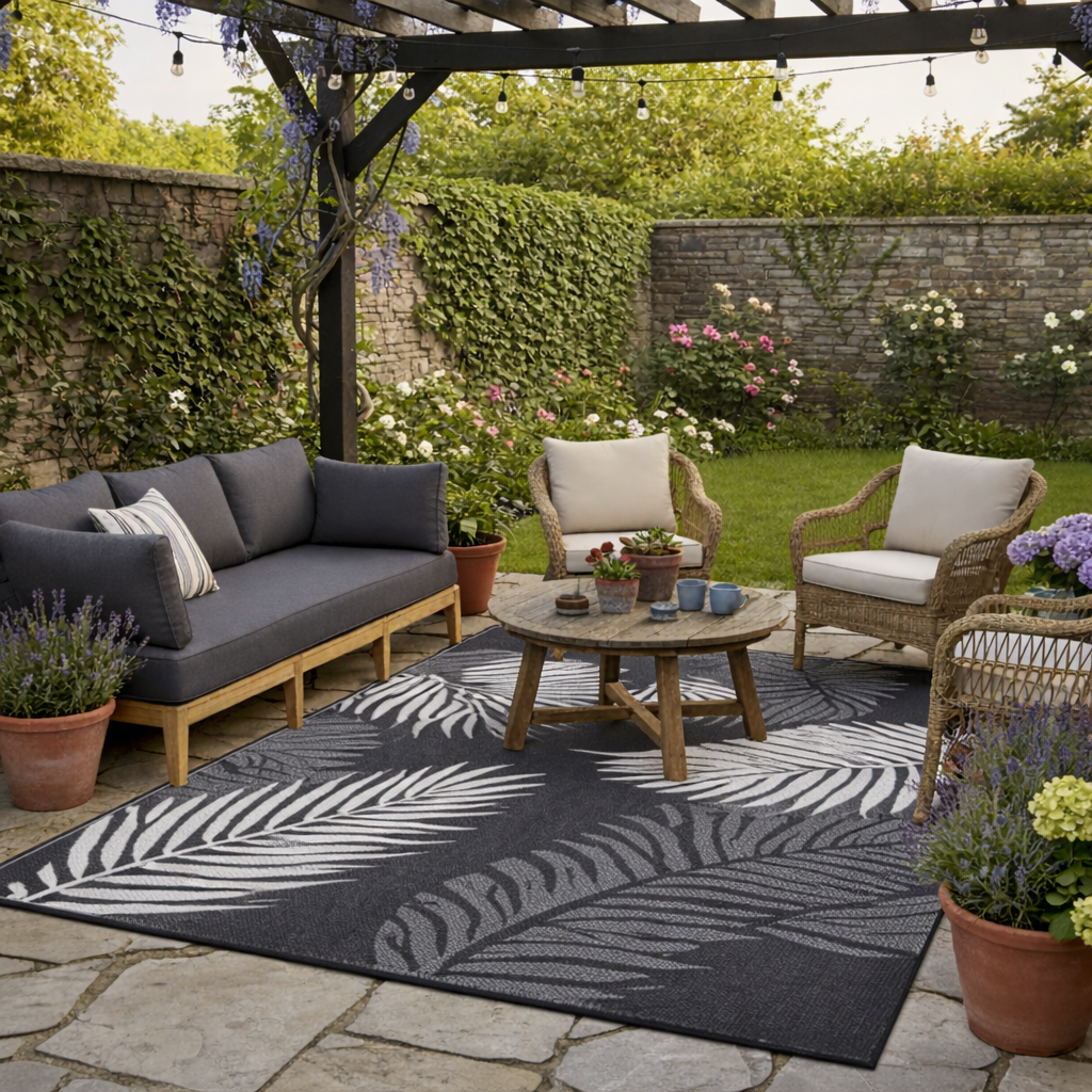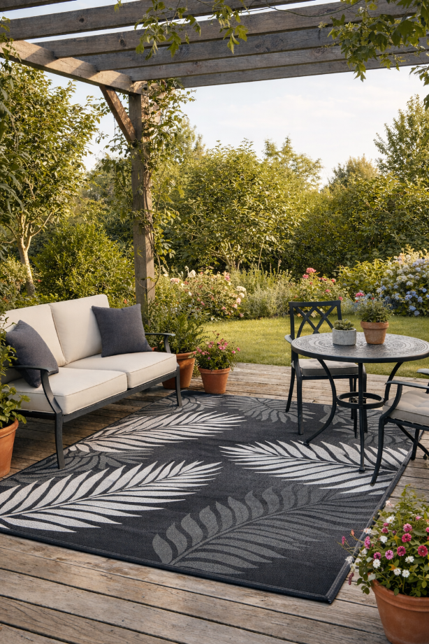 WODOODPORNY DYWAN TARASOWY ZEWNĘTRZNY 160x230 CM CM SZARY LIŚCIE [DYWAN8]