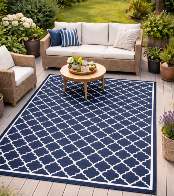 WODOODPORNY DYWAN TARASOWY ZEWNĘTRZNY 160x230 CM GRANATOWY [DYWAN18]