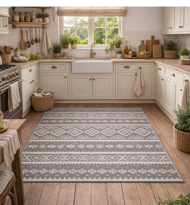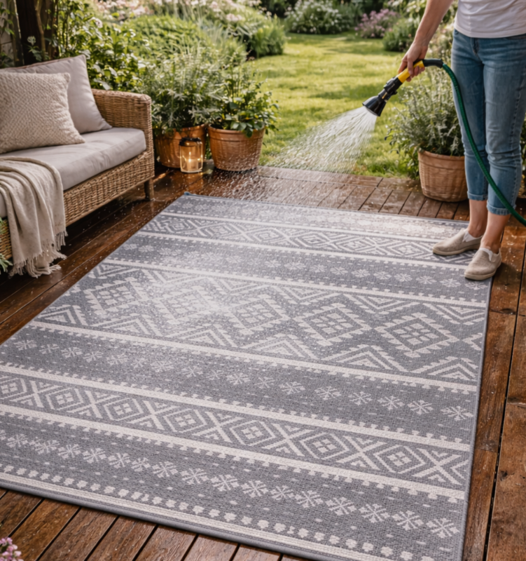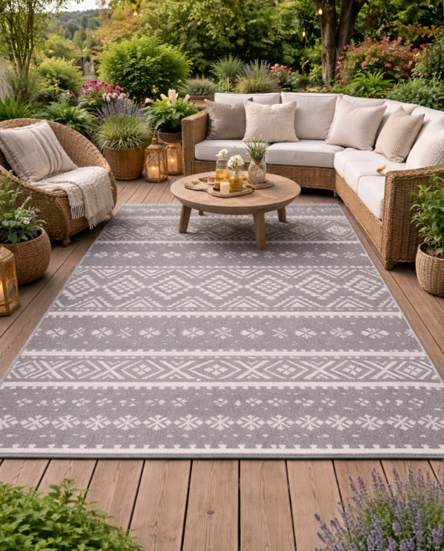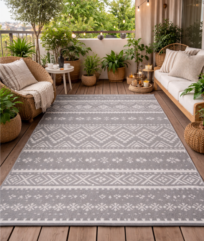 WODOODPORNY DYWAN TARASOWY ZEWNĘTRZNY 160x230 CM SZARO-BIAŁY ETNO [DYWAN16]