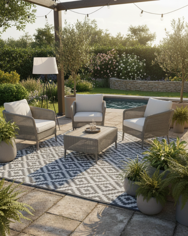 WODOODPORNY DYWAN TARASOWY ZEWNĘTRZNY 240x300 CM SZARO-BIAŁY ROMBY [DYWAN6]