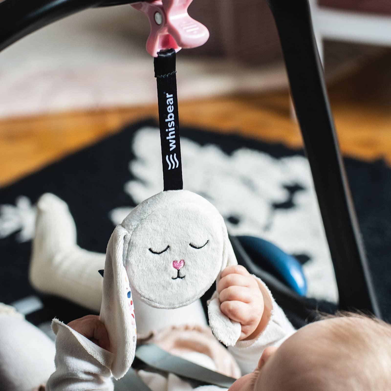 Zawieszka Felcia to wymarzony gadżet na spacer! Z powodzeniem zastępuje dużą szumiącą maskotkę - Królisia Felcię. Jest niewielka, łatwa do mocowania do wózka, szumi tak samo. Tyle że nie ma czujnika płaczu i trzeba ją uruchamiać ręcznie. Różowy szum, emitowany po naciśnięciu, uspokaja niemowlęta, bo kojarzy im się z dźwiękiem z brzucha mamy. Główka Felci sympatycznie wygląda, a urody dodają długie, kolorowe uszy.