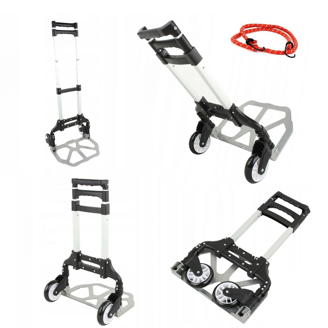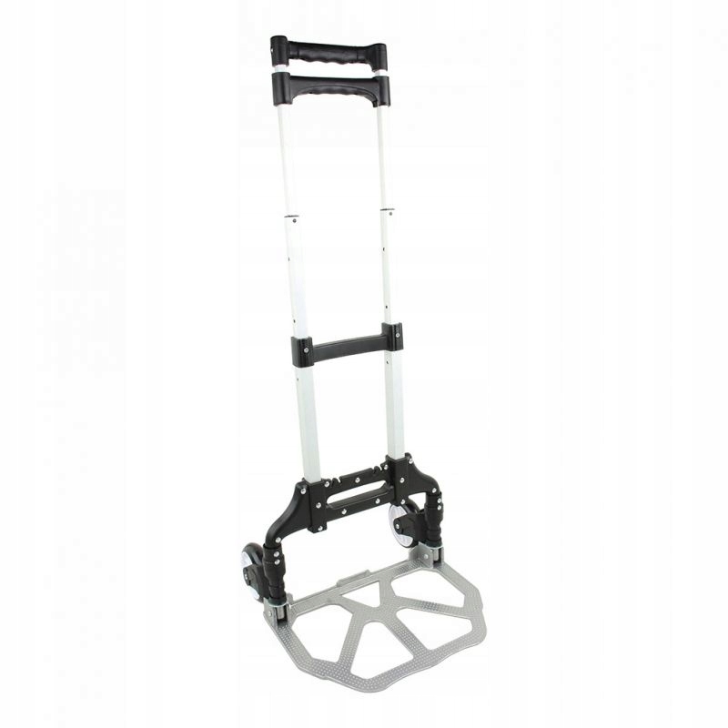 Regulowany uchwyt teleskopowy, stabilna metalowa konstrukcja w połączeniu z kółkami z tworzywa sztucznego umożliwia obciążenie do 80 kg. Dzięki niewielkiej wadze i dużym kółkom jest łatwa w manewrowaniu i wyjątkowo praktyczna.