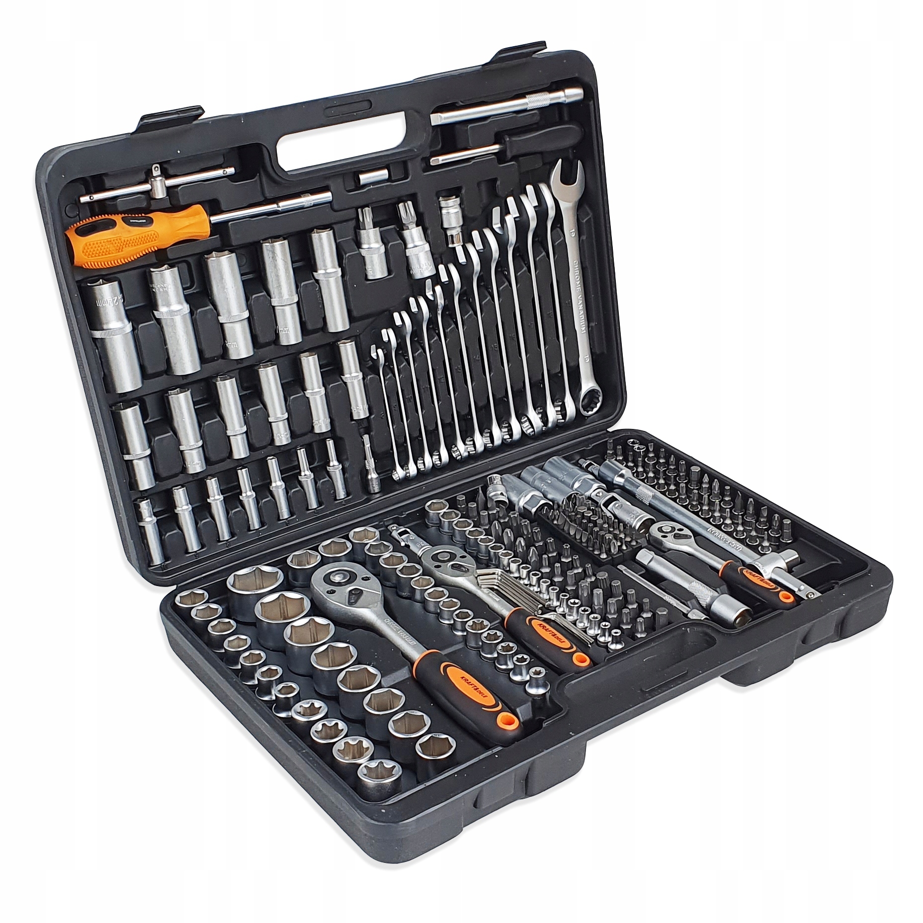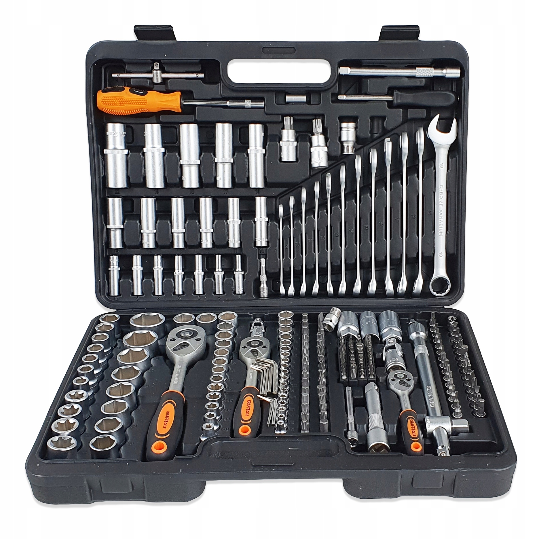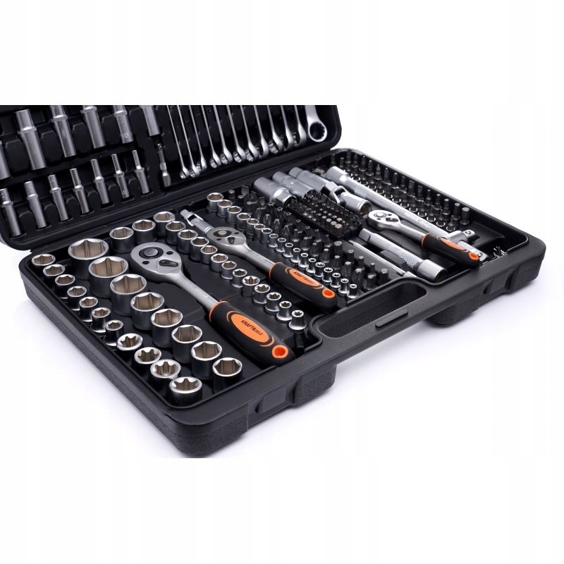 - Cały zestaw składa się z 219 różnych elementów, które zapewnią odpowiedni dobór narzędzia do potrzeb.