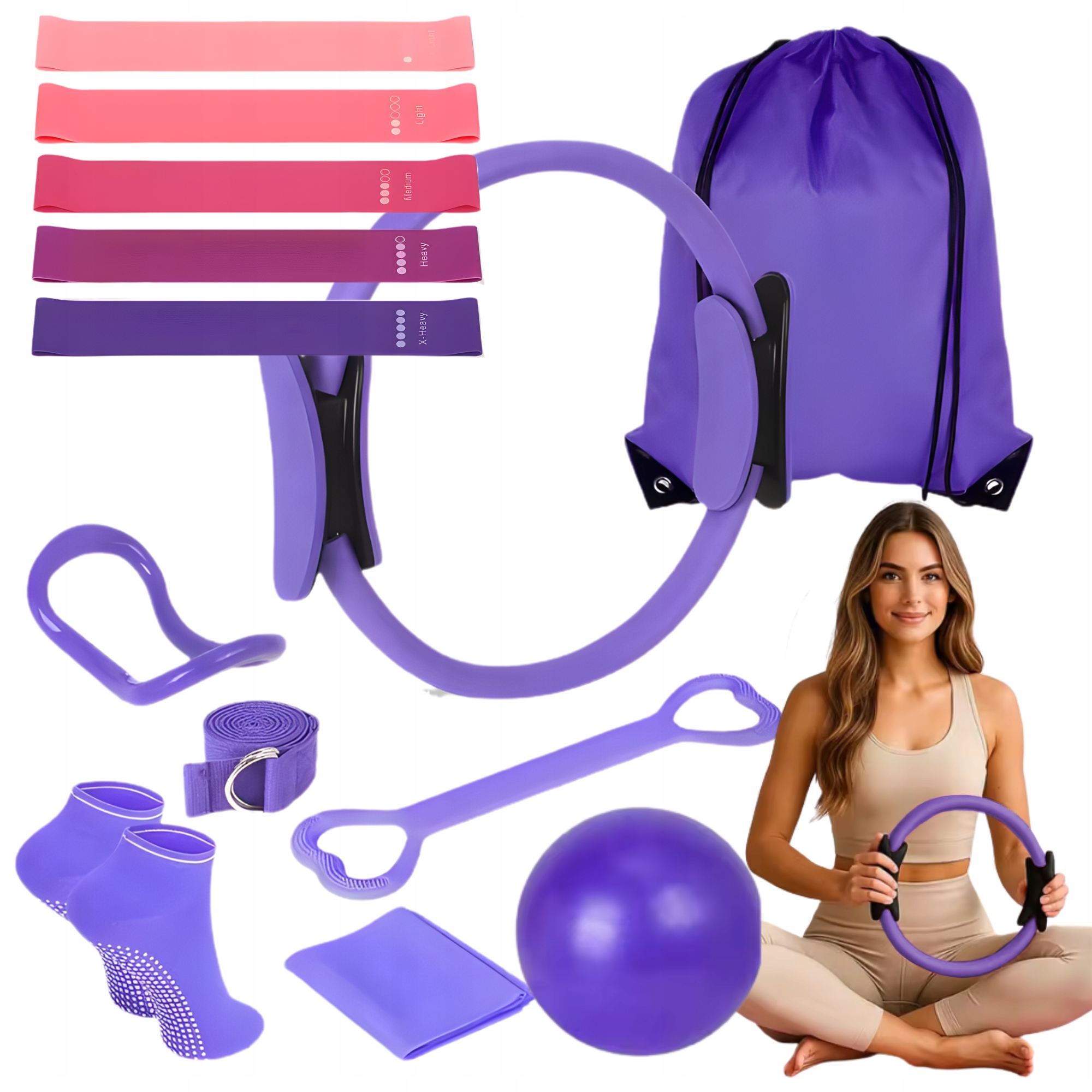 ✅ Kompletny zestaw treningowy do pilatesu i jogi.