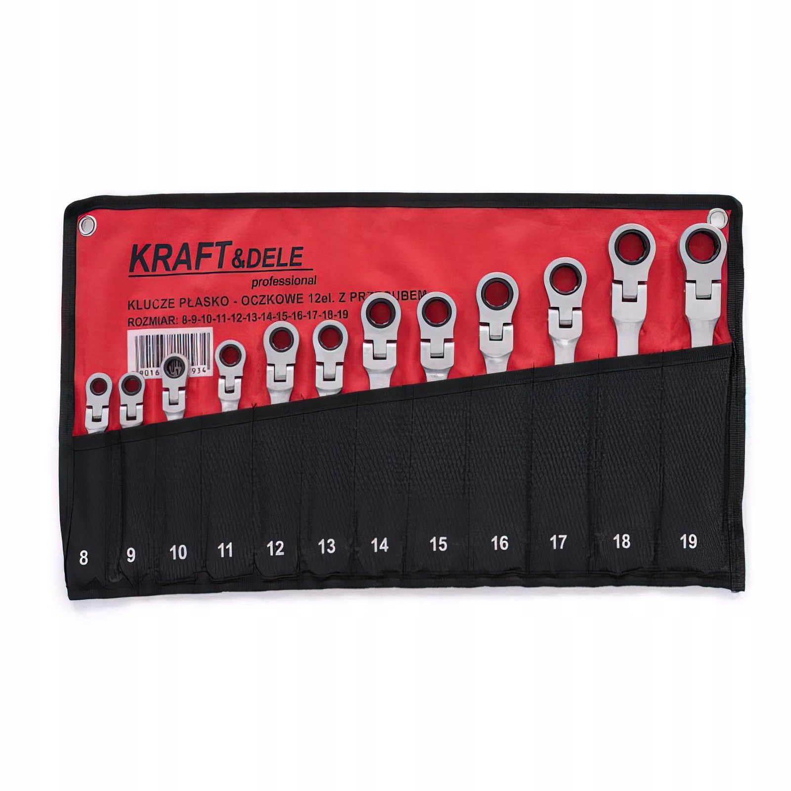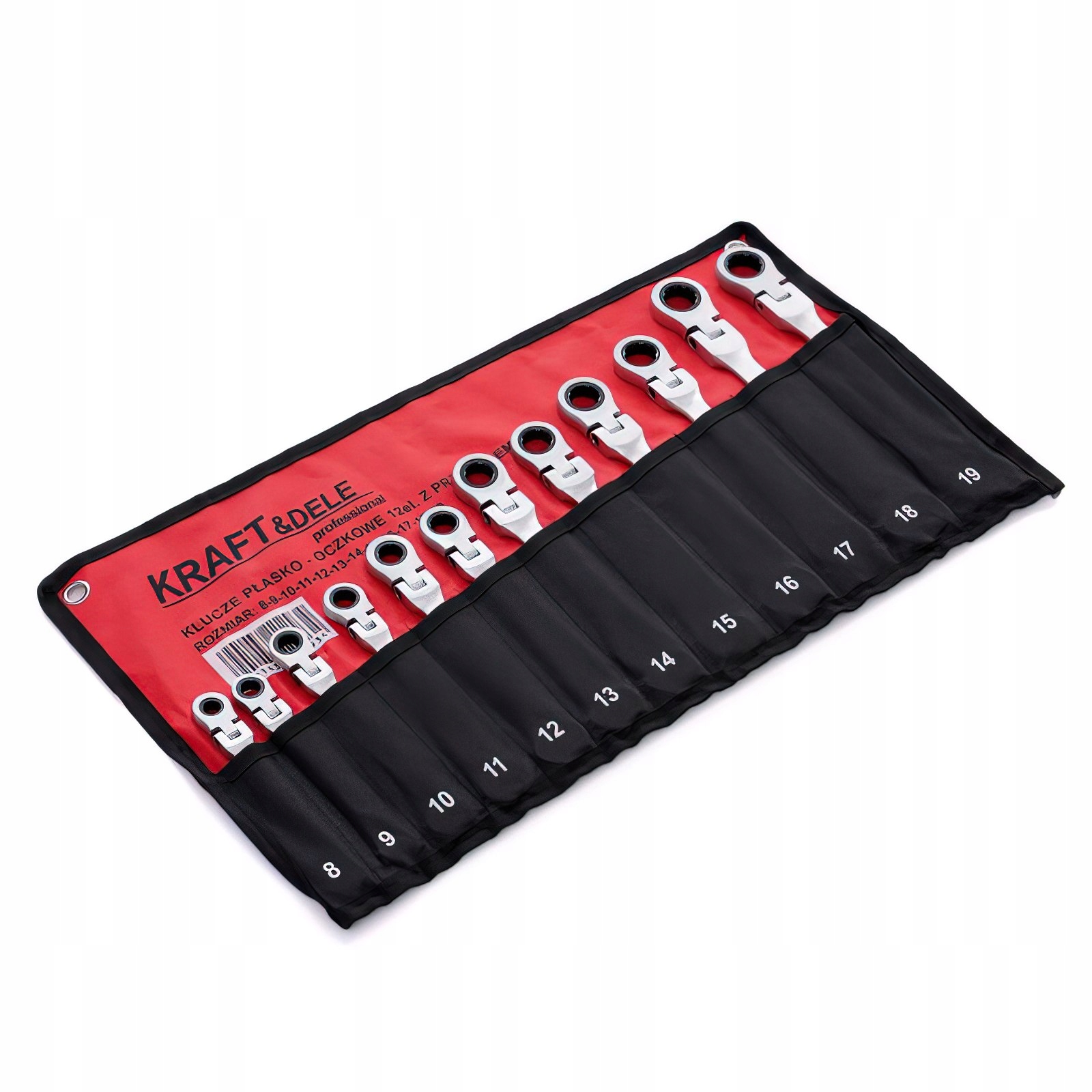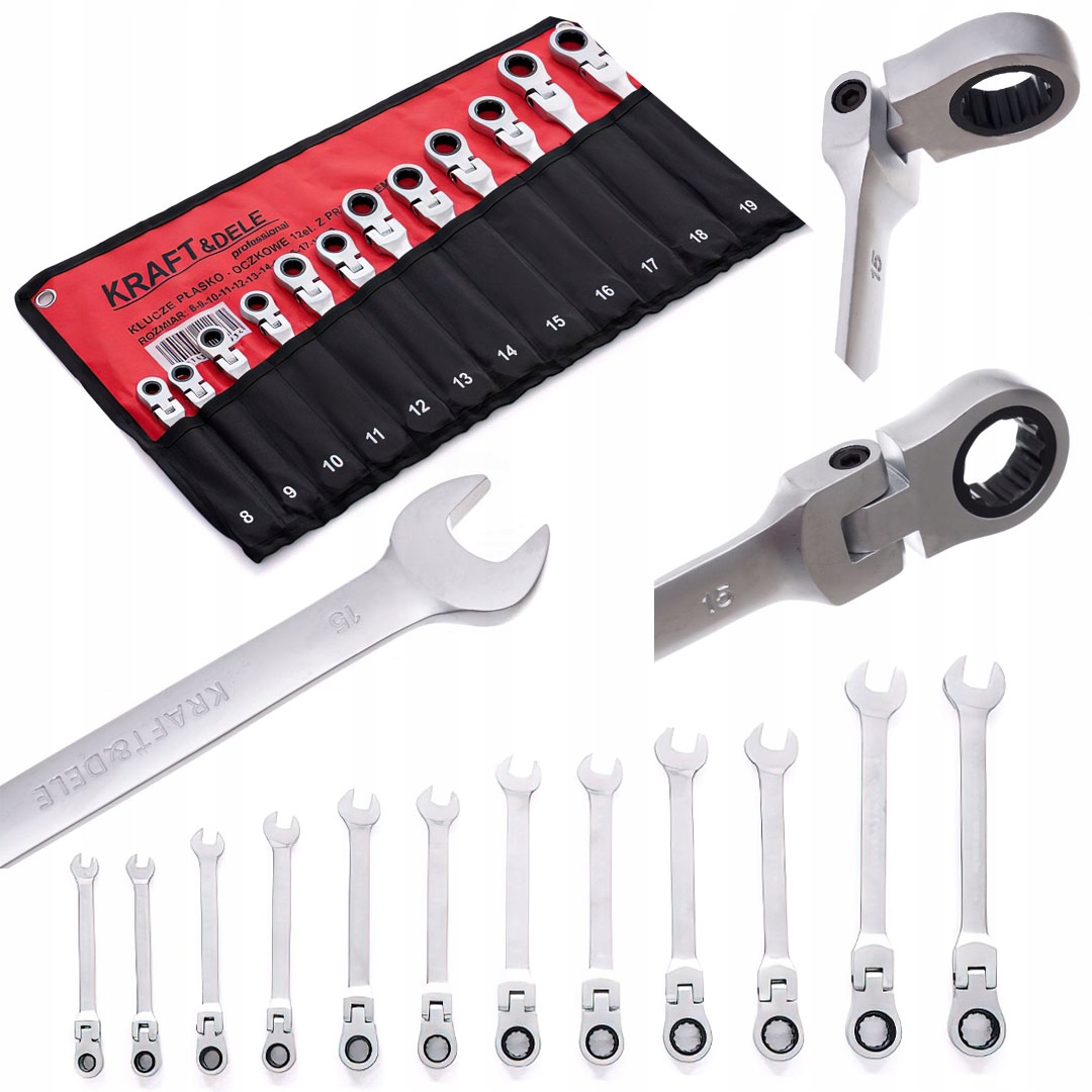 Zestaw Kluczy Płasko-Oczkowych z Grzechotką Łamaną 12 Elementów 8-19 mm