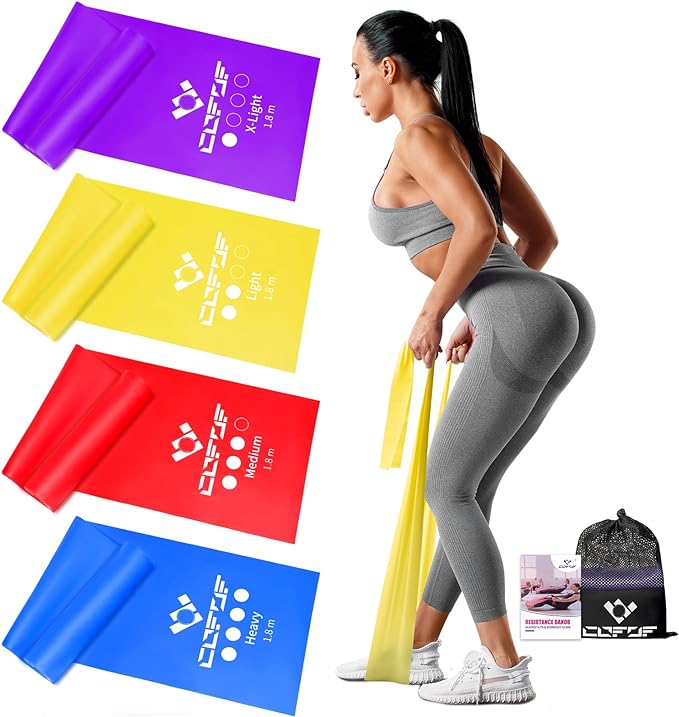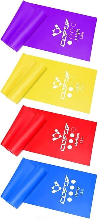 Taśmy fitness COFOF dostępne są w długości 1,8 m i oferują 4 różne poziomy oporu, aby dostosować się do Twoich potrzeb treningowych: ultralekki, lekki, średni i ciężki. Dzięki temu możesz łatwo dopasować swój trening do swojej siły, umiejętności i komfortu, bez względu na to, czy dopiero zaczynasz czy jesteś doświadczonym sportowcem.